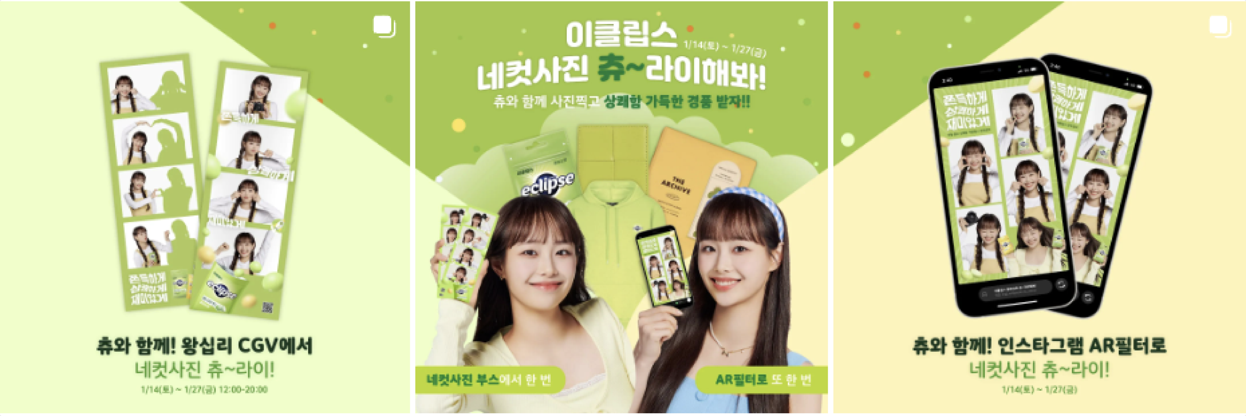 신제품 이클립스 쫀득민트를 알리고 제품의 특징에 어울리는 각종 KV와 광고 촬영 및 현장 이벤트 진행